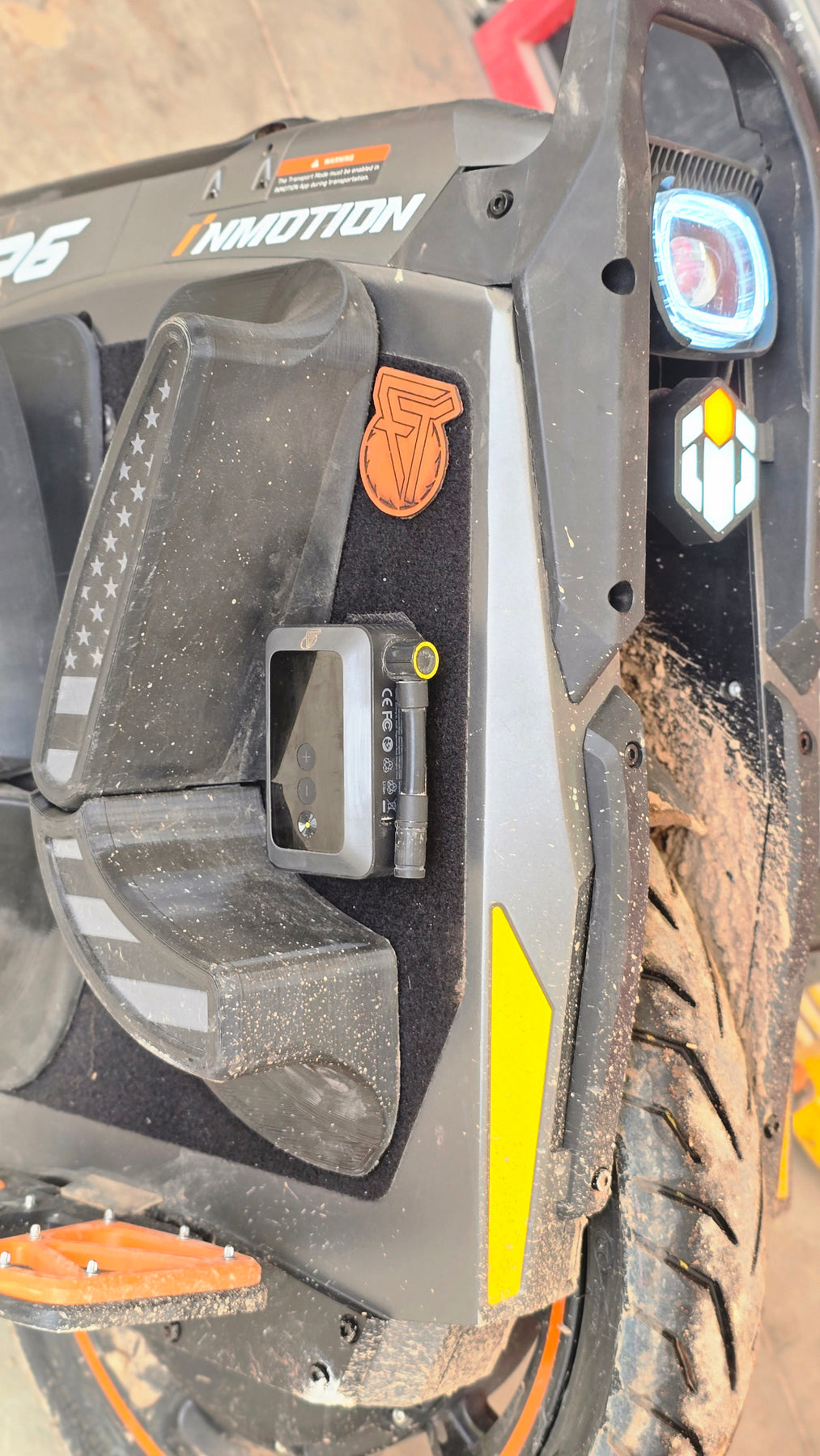 From the start we set out to make an euc pad that could be customized to the needs and imagination of all user types and be changed according to your style and riding preferences. the front and back of the pads have large flat surface to attach Velcro to that Oppens up all kinds of possibilities to mount lights, reflectors, bottle cages, pouches, molle panels,air compressors,speakers,camera mounts and almost anything with a flat surface. the side inserts can be changed as well and come with a design on one side and are flat on the other to adhere reflectors or stickers to for an even more personalized expireance. We are working on even more adapters and accessories coming soon.